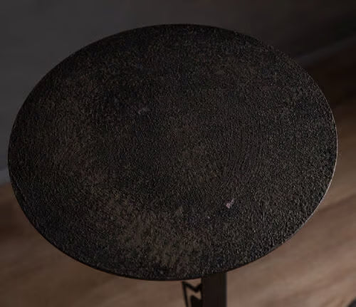 A stand table of “maasa” original design, featuring a swirl pattern. The products finish are varied in rusted look, glazed or unglazed. It‘s suitable for placing flower vases, lighting, fragrances etc. It can also be used as an object placement at the entrance of your office.